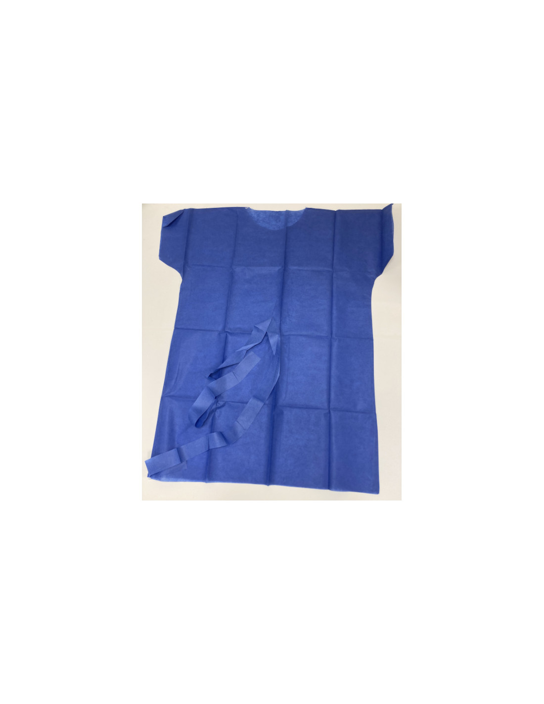 The standing patient gown with central back pre-cut is a disposable polypropylene gown designed for quick dressing and immediate dorsal access.