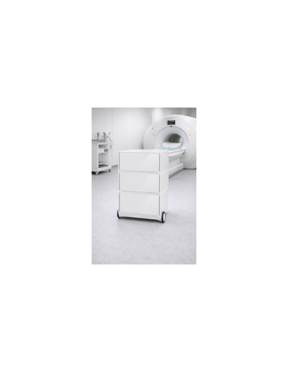 Équipé de trois tiroirs de grande capacité, ce caisson permet une organisation claire et efficace du matériel médical. Les tiroirs sont conçus pour accueillir les accessoires et consommables couramment utilisés en service d’imagerie, tout en assurant un accès rapide et ergonomique. La mobilité de l’ensemble facilite les déplacements et améliore la fluidité du travail du personnel soignant.